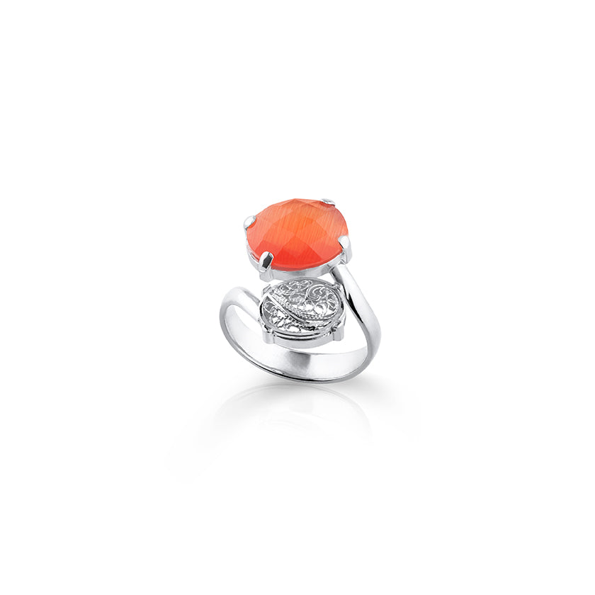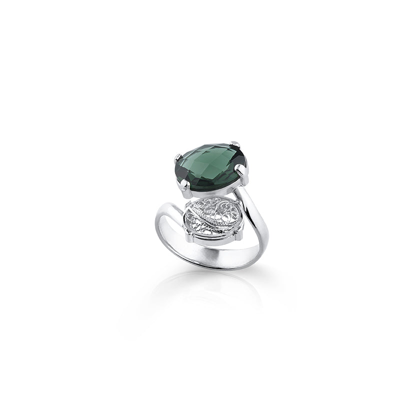 Anel 1 Pedras Ovais Filigrana Prata