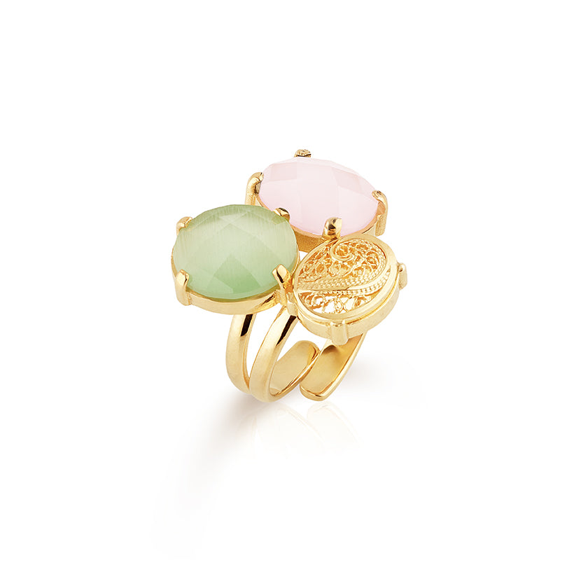 Para a coleção Aquarela, a Joalharia do Carmo apresenta peças onde a cor ganha vida através de pedras hidrotermais. Criadas em laboratório sob condições que reproduzem os processos naturais de formação geotérmica (alta pressão, temperatura e soluções aquosas ricas em minerais) estas gemas apresentam composição química, cor e propriedades ópticas idênticas às naturais, com qualidade controlada e uma harmonia cromática perfeita.