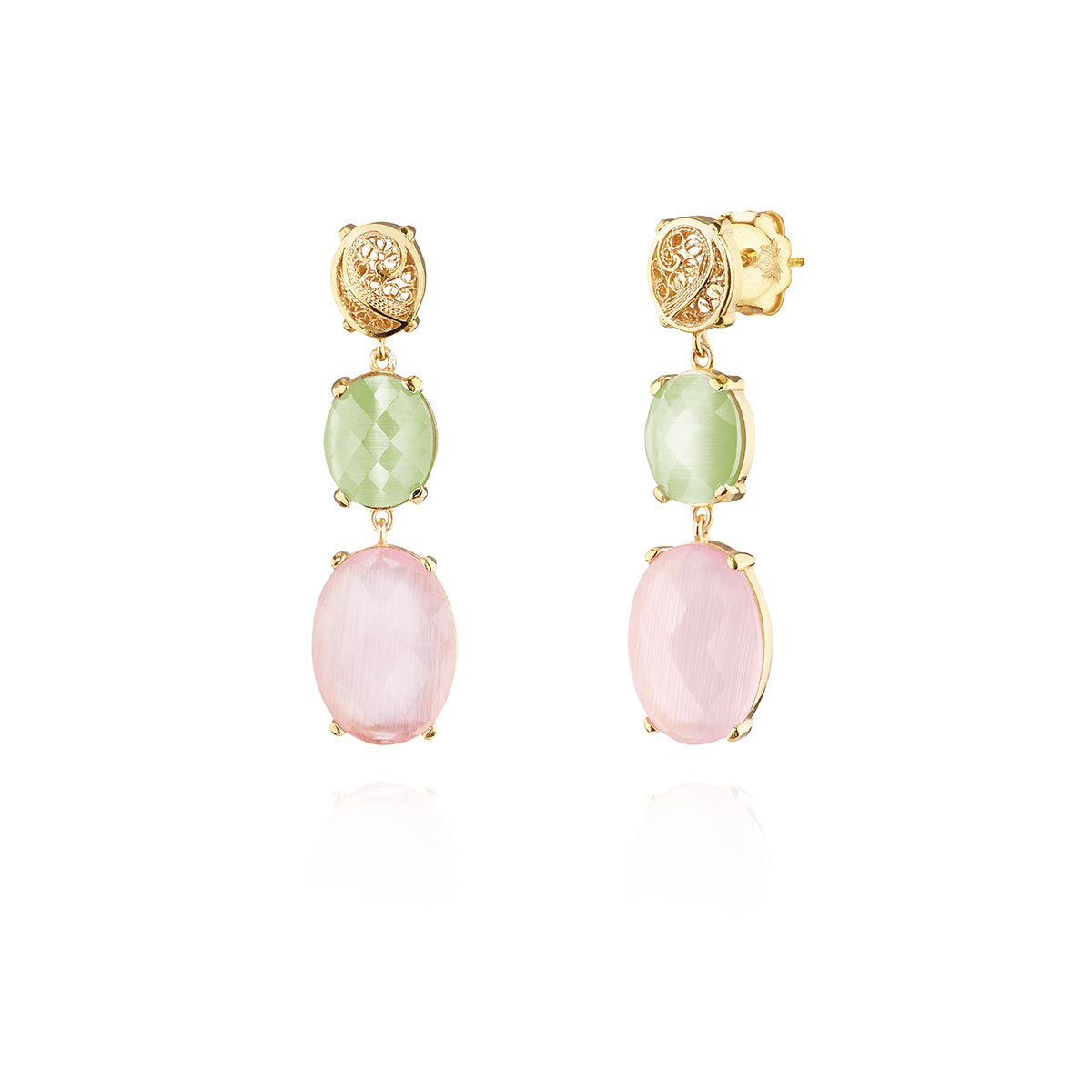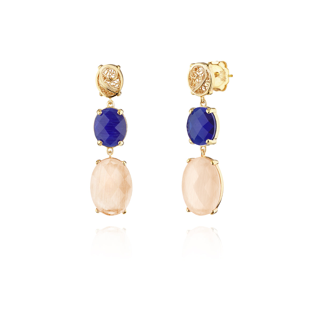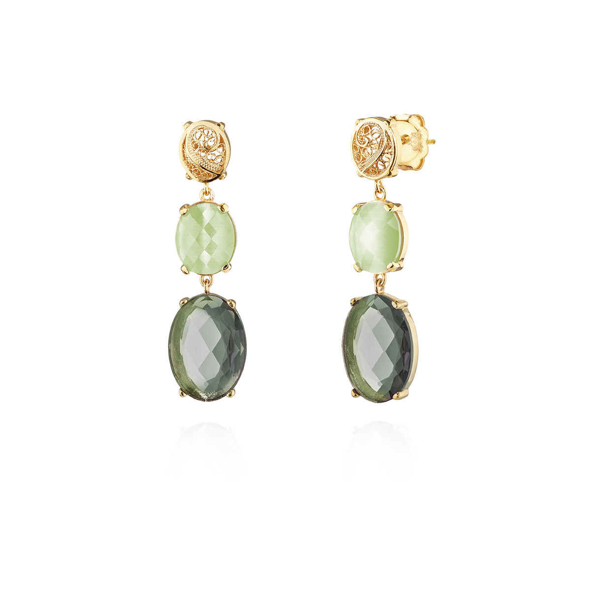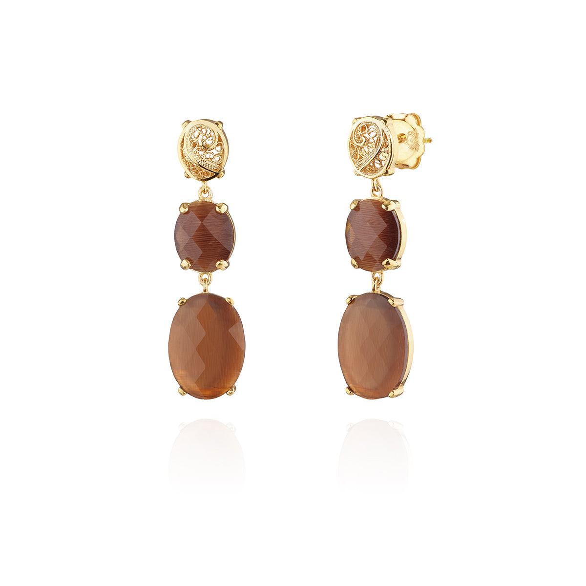 Brincos 2 Pedras Ovais Filigrana Dourado