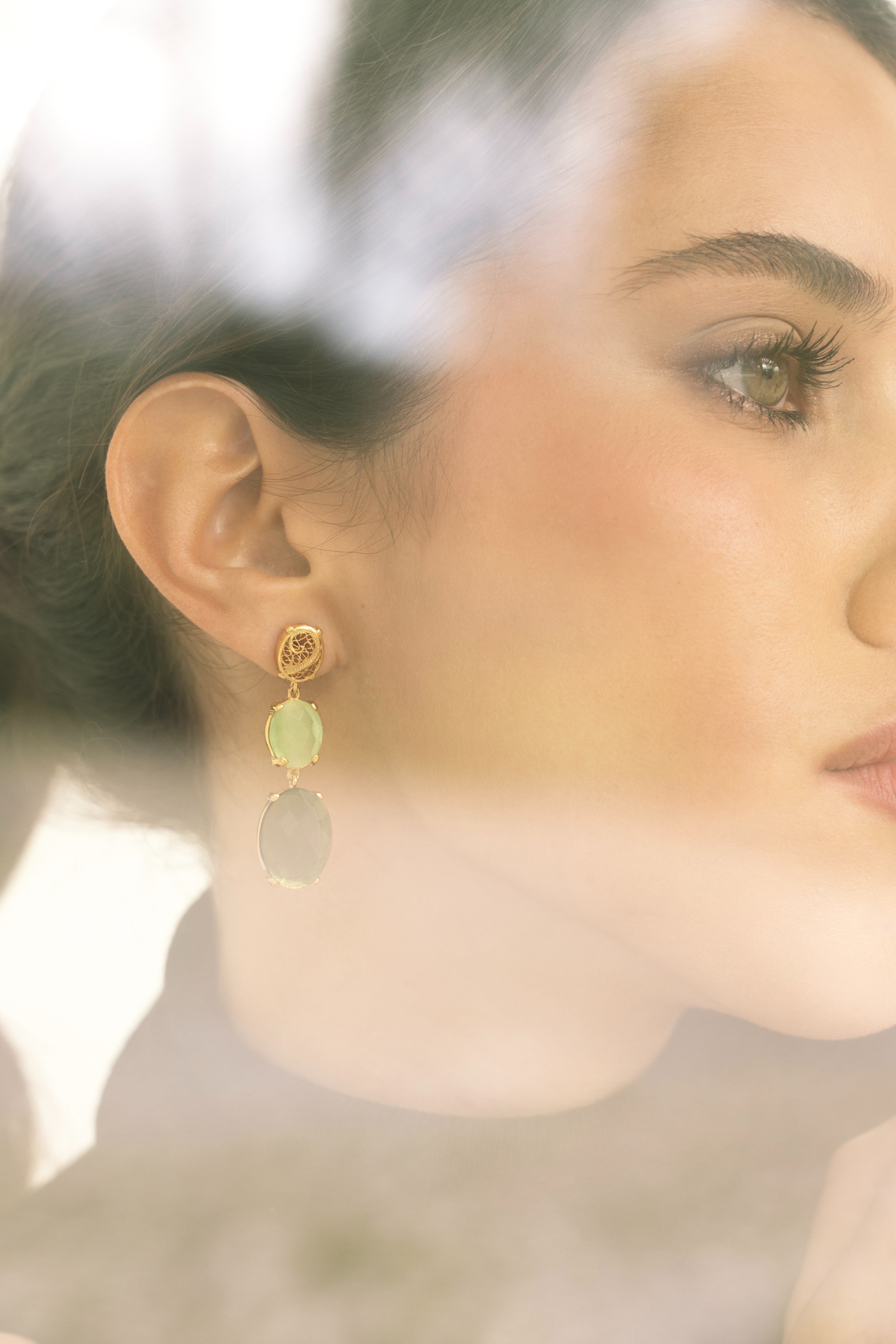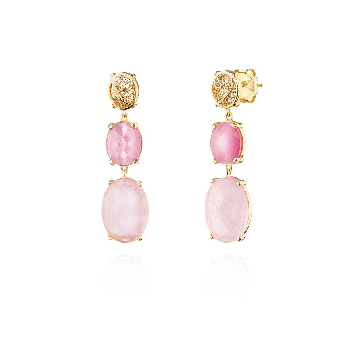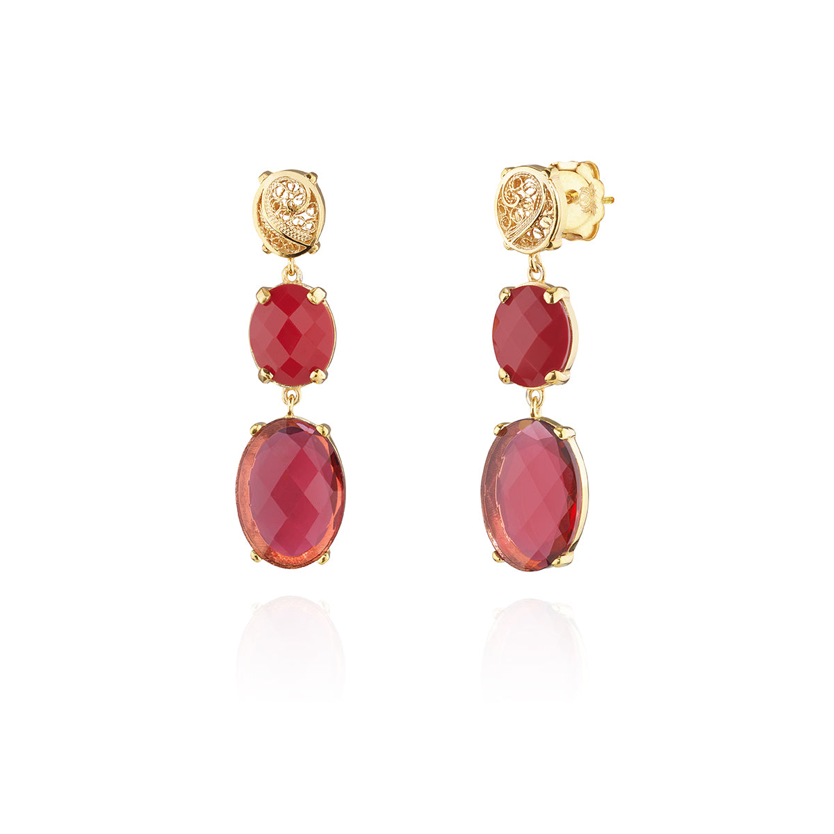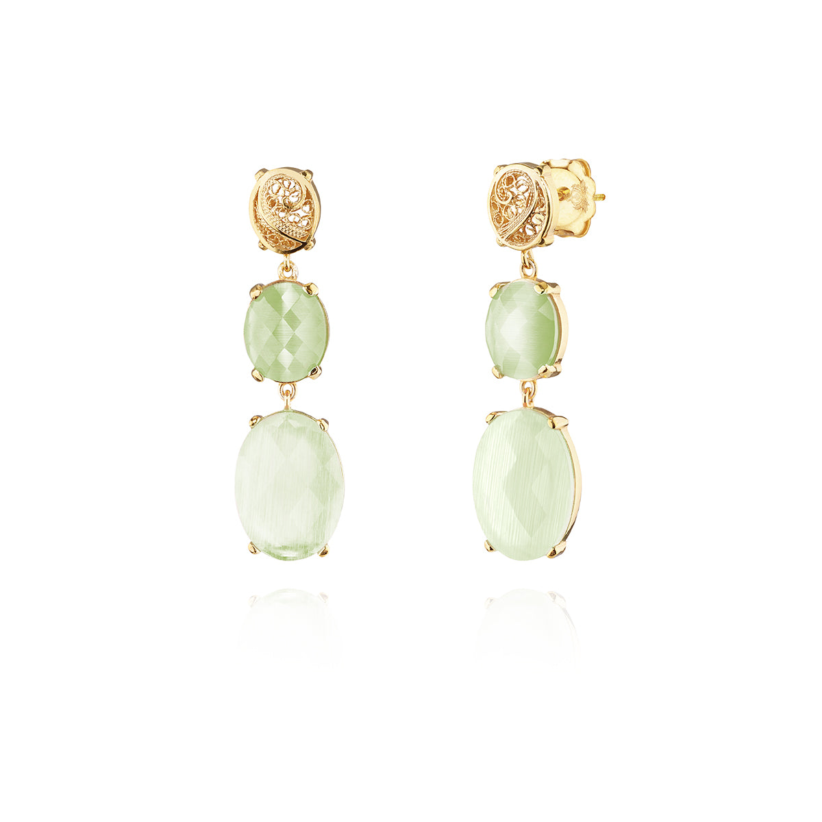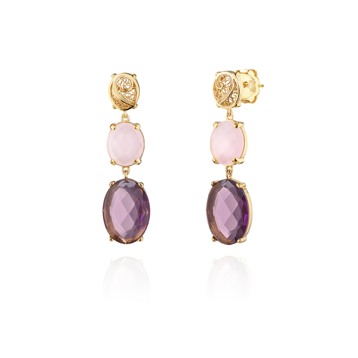 Brincos 2 Pedras Ovais Filigrana Dourado