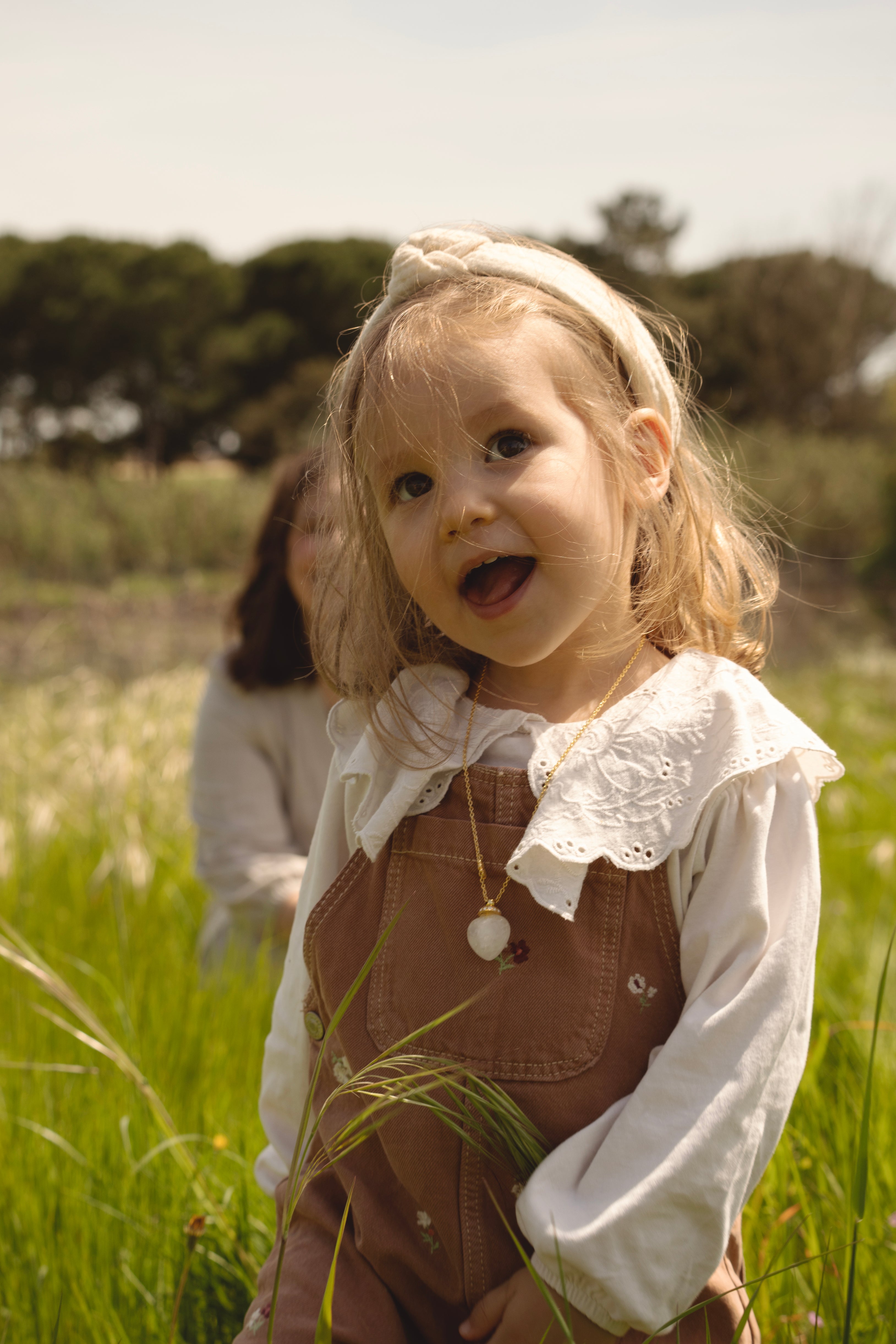 Inclui um medalhão de filigrana em forma de trevo, num tributo ao carinho que atravessa gerações.