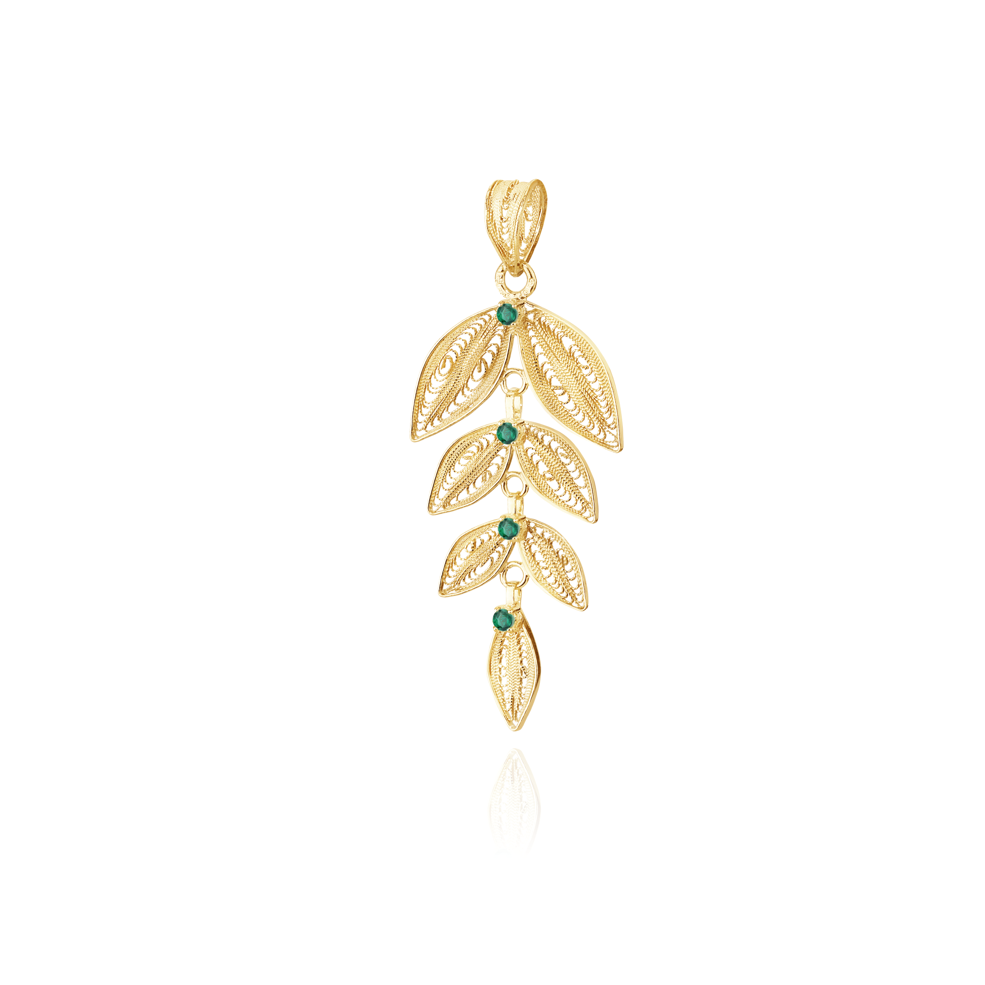 Folhas 37mm altura + 4 Esmeraldas 0,14CT