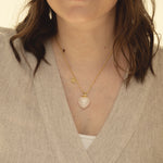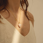 Uma peça pensada para o Dia da Mãe, com um coração em pedra natural que guarda no seu interior o aroma delicado da flor de laranjeira — símbolo de pureza, amor e novos começos.