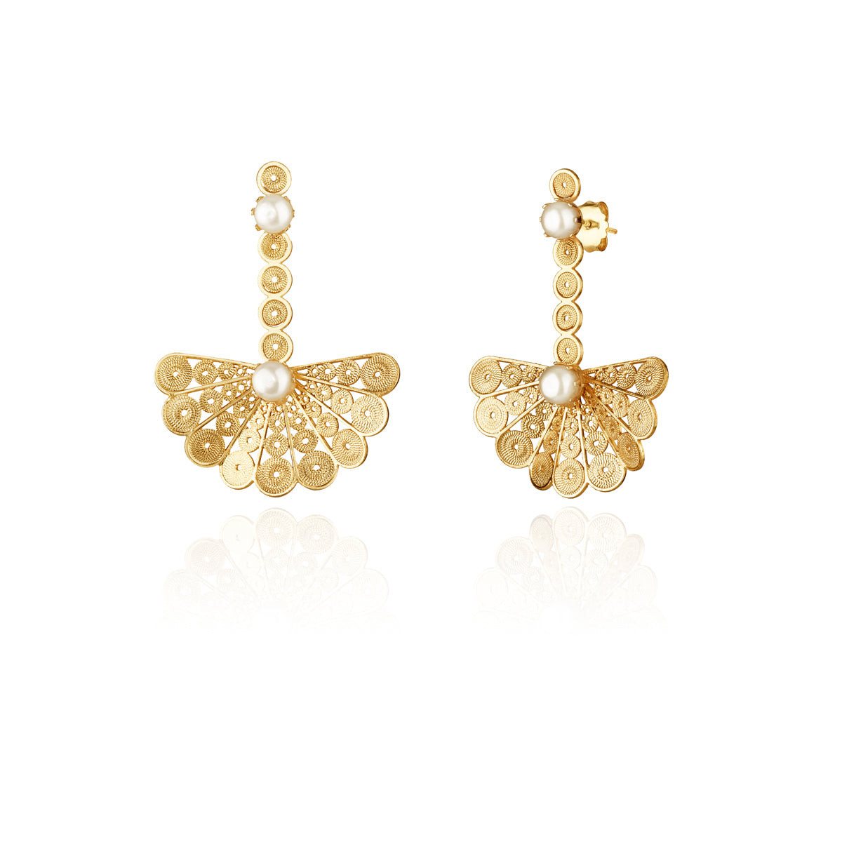 Fan-Shaped Twisted Earrings with Pearl