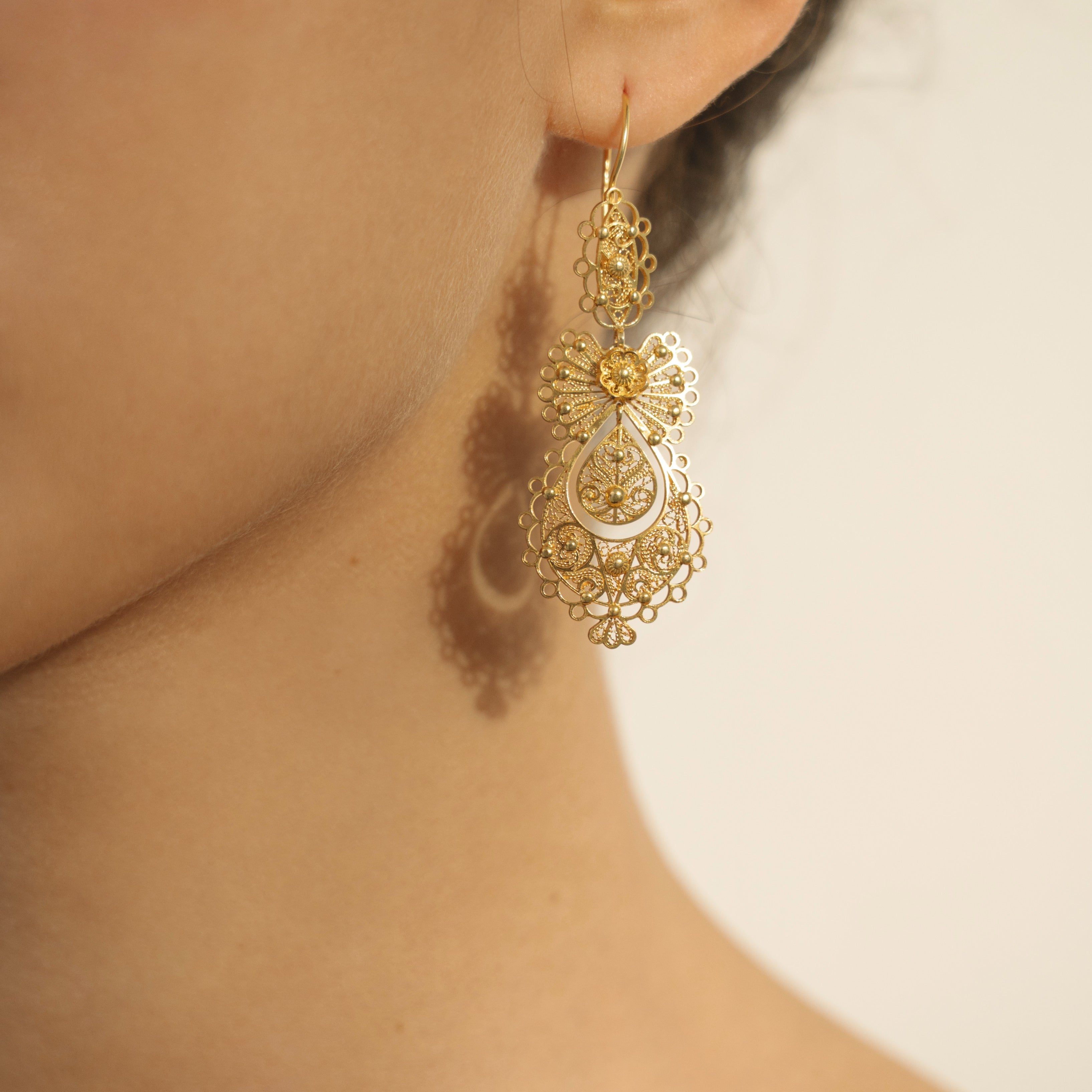 Portuguese Filigree Arrecadas with Enamel Gold Plating 36mm