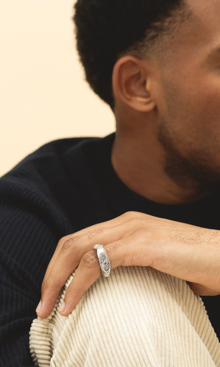 Le filigrane est l'art de produire des fils d'or ou d'argent très fins, torsadés et aplatis, appliqués manuellement dans un travail délicat de minutie et de patience. C'est une technique ancestrale, qui donne naissance à une pièce intemporelle.
