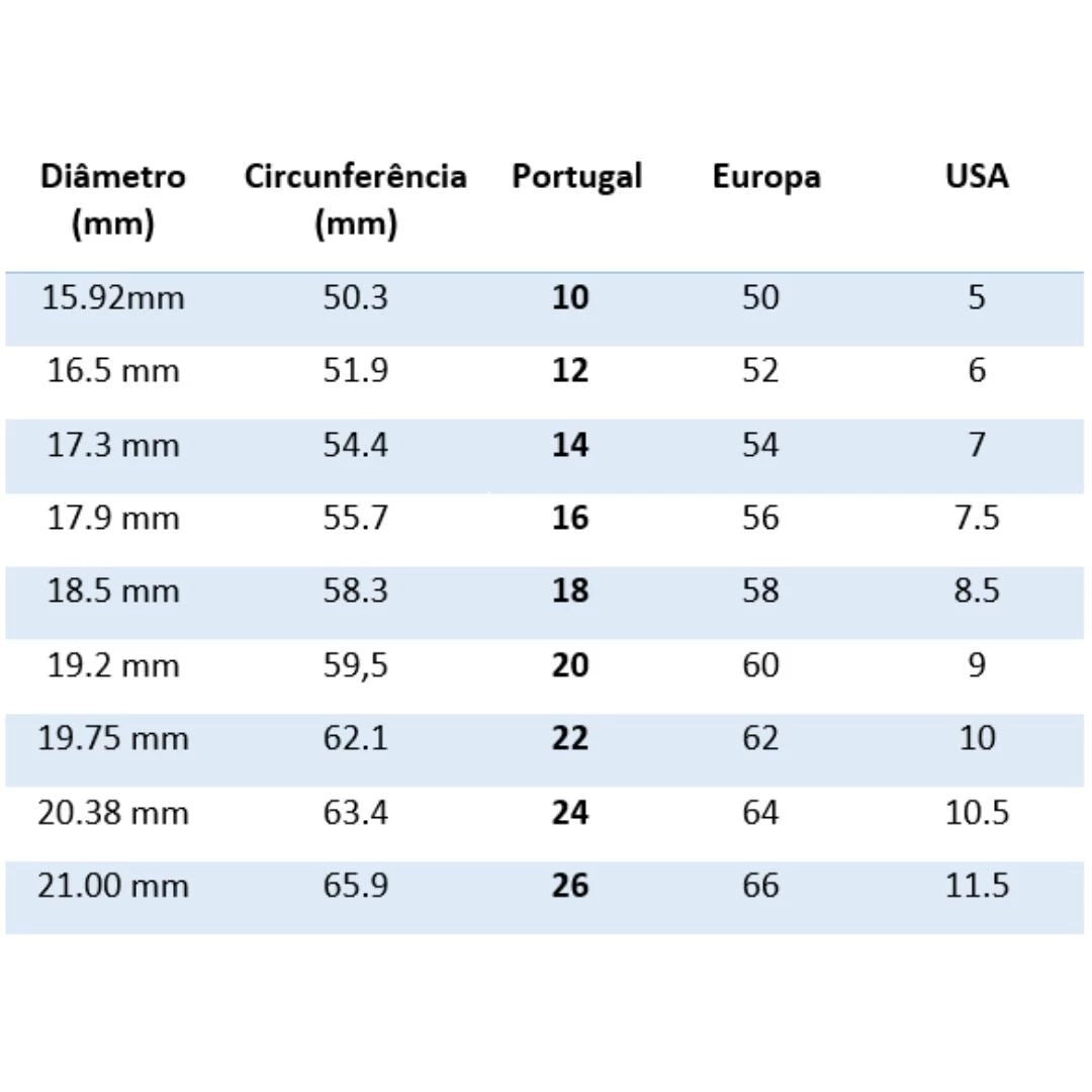 À Joalharia do Carmo, nous utilisons l'échelle portugaise